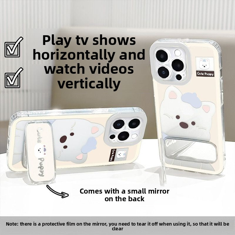 Fall for this adorable "Cute Puppy" phone case! Clear design shows a sweet white pup with pink ears & a blue hat. It has a handy foldable stand for easy viewing. Protects your phone while adding a dash of cuteness. Perfect for dog lovers—grab yours to keep your device stylish & safe!